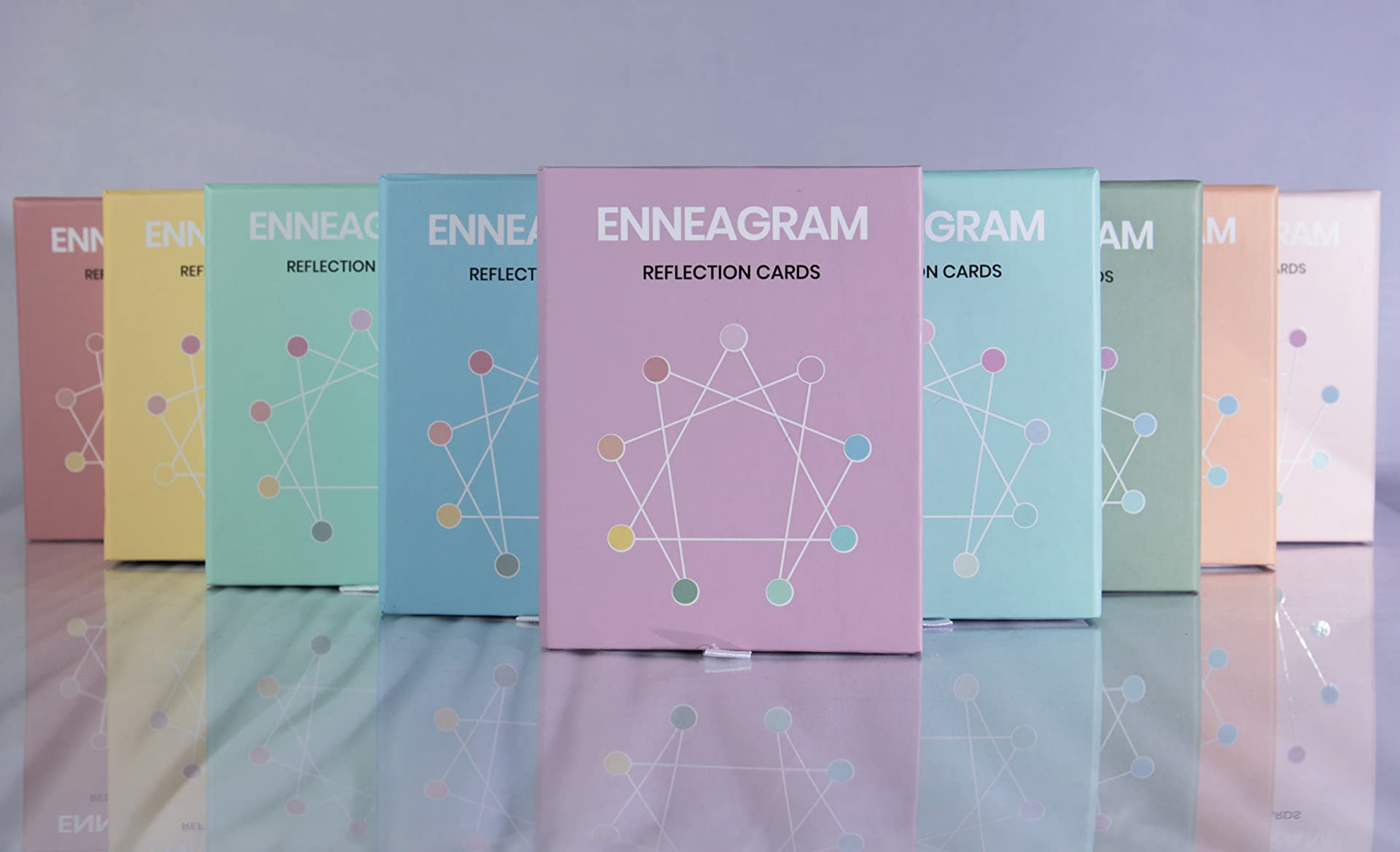 Utilizing Adobe Photoshop and InDesign, designed 9 decks of 54 reflection cards. Design included overall logo design for the company/back of the card, individual iconography, and color palette for each deck.